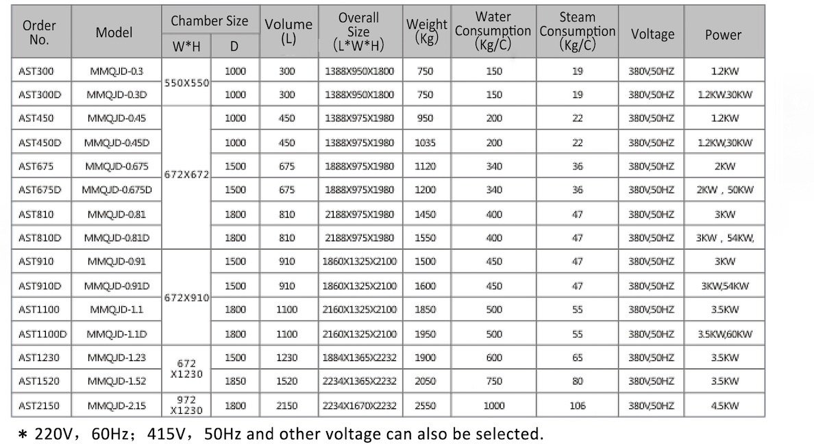 - The material of chamber, jacket, doors, steam generator, pipes, loading cart and transfer trolley are made of 304 stainless steel. 316L stainless steel can also be made.